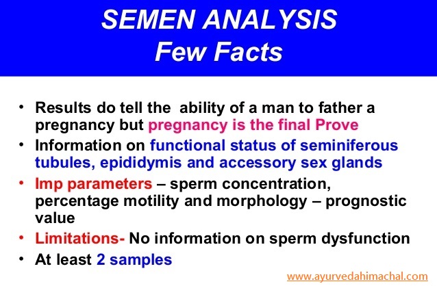 - For more male fertility tips, read http://www.ayurvedahimachal.com/index.php?page=completearticle&&id=23#sthash.fEK5TIfg.dpbsI hope this helps you read the results of your sperm test�don�t give up on your dream of getting pregnant.